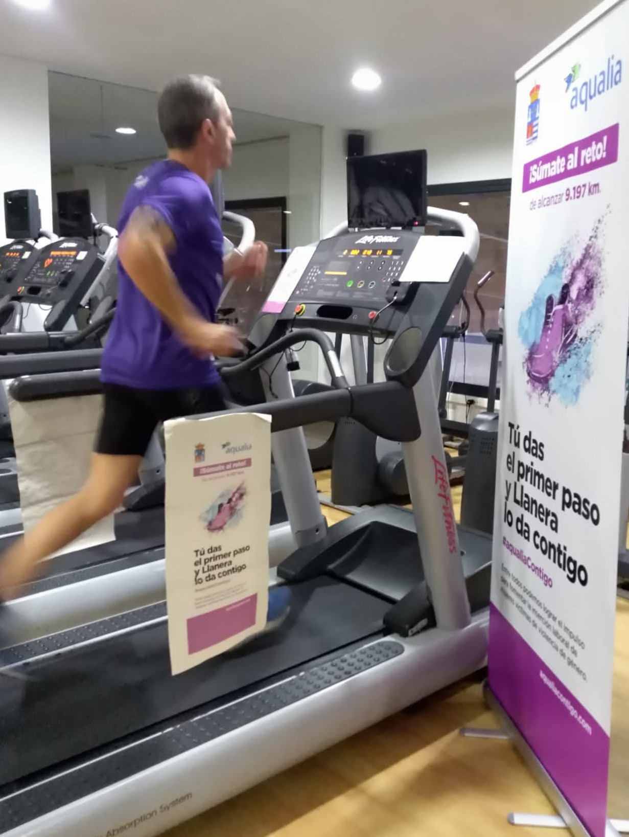 En La Bañeza (León), Aqualia ha coordinado la iniciativa “Tú das el primer paso y La Bañeza lo da contigo”. En esta ocasión, se han instalado dos cintas de caminar en la Plaza Mayor, en las que se invitaba a la población a sumar kilómetros contra la violencia de género. Instaladas de 10 de la mañana y hasta las 16 horas, en total se sumaron un total de 42 kilómetros, gracias a la desinteresada participación de cerca de 100 ciudadanos de La Bañeza y su comarca.