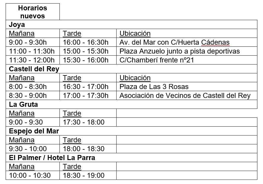 Desde mañana, se ampliarán puntos de recogida, lo que conlleva un cierto cambio de horarios en todas las zonas afectadas, que quedará así:
