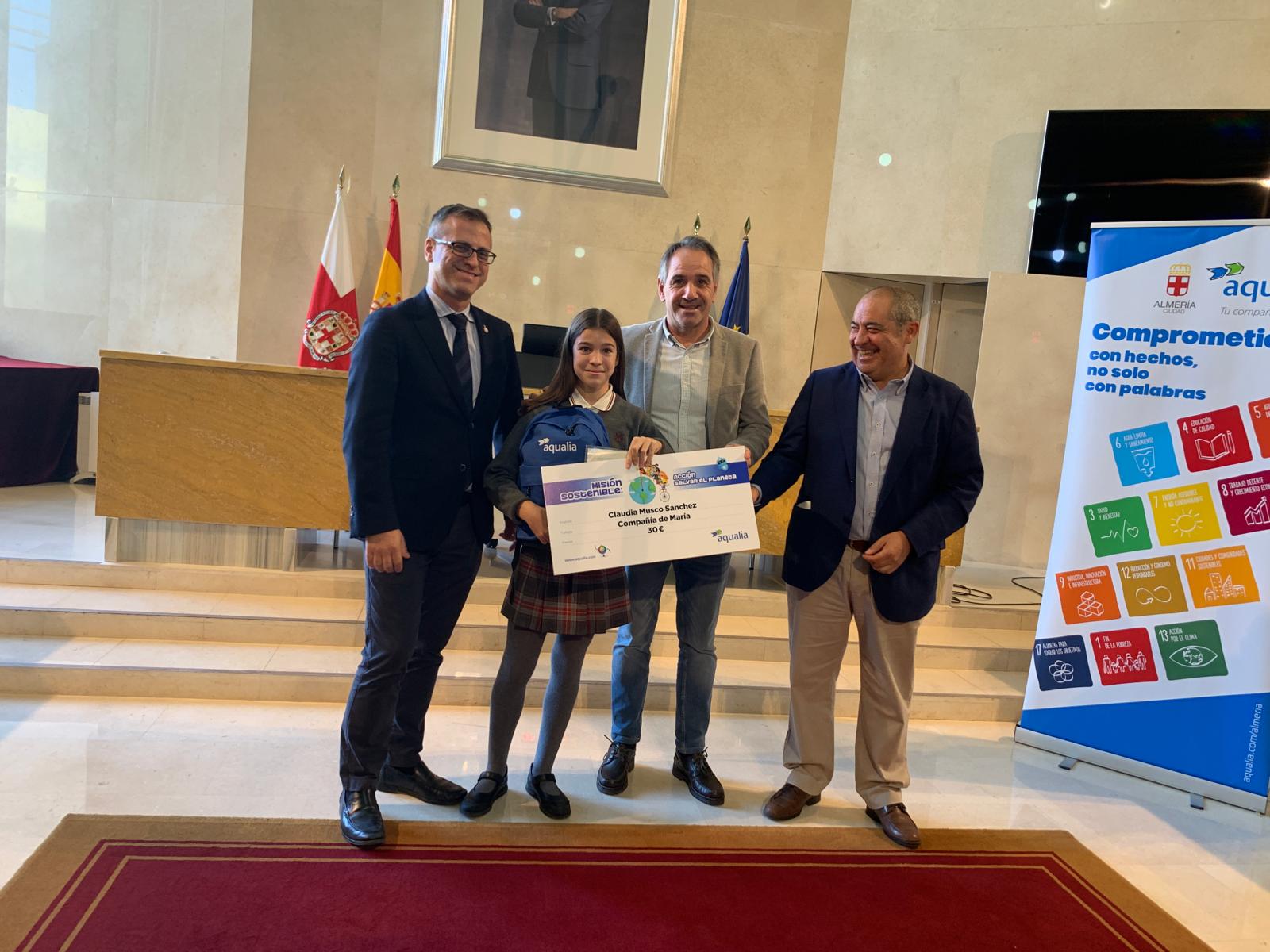 Aqualia junto al ayuntamiento de Almería, ha entregado hoy sus premios a los finalistas almerienses del Concurso Digital Infantil, que este año se convocó bajo el tema “Misión Sostenible: acción salvar el planeta”, en torno a la web www.aqualiayods6.com. Pudieron participar los niños y niñas que estuvieran cursando 3º y 4º de Primaria de los colegios de Almería, a los que se enviaron las bases e indicaciones necesarias para ello.