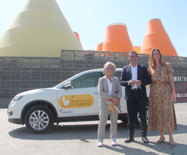 Por otro lado, fruto de la colaboración entre Aqualia y Acción Cultural Española, el Pabellón de España cuenta con un automóvil que se ha usado como vehículo oficial dentro del recinto. El vehículo es equivalente a los que Aqualia utiliza a diario en sus operaciones y que se mueven con el biogás generado en las depuradoras a partir de las aguas residuales. La utilización de este combustible genera un 80% menos de emisiones de CO2 que un vehículo alimentado por gasolina.