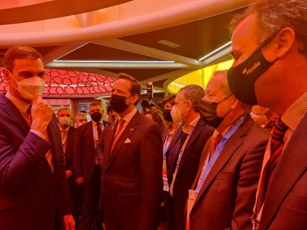 Aqualia ha sido una de las empresas invitadas en el foro empresarial organizado por el ICEX, la Oficina Comercial de la Embajada de España en Emiratos Árabes Unidos y la Cámara de Comercio con motivo del Día de España en Expo Dubái, el pasado 2 de febrero. La compañía participó en el foro empresarial con la intervención de su country manager en Egipto, Ignacio de la Quintana, en el panel “Present business opportunities and references to Spanish projects in the UAE. Water, Infrastructure and Sustainability”, que introdujo el presidente del Gobierno de España, Pedro Sánchez; la ministra de Industria, Comercio y Turismo, Reyes Maroto; y su homólogo emiratí Thani bin Ahmed Al Zeyoudi. Tras el círculo de negocios se celebró un encuentro en el Pabellón de España entre el presidente español y los colaboradores del pabellón.
