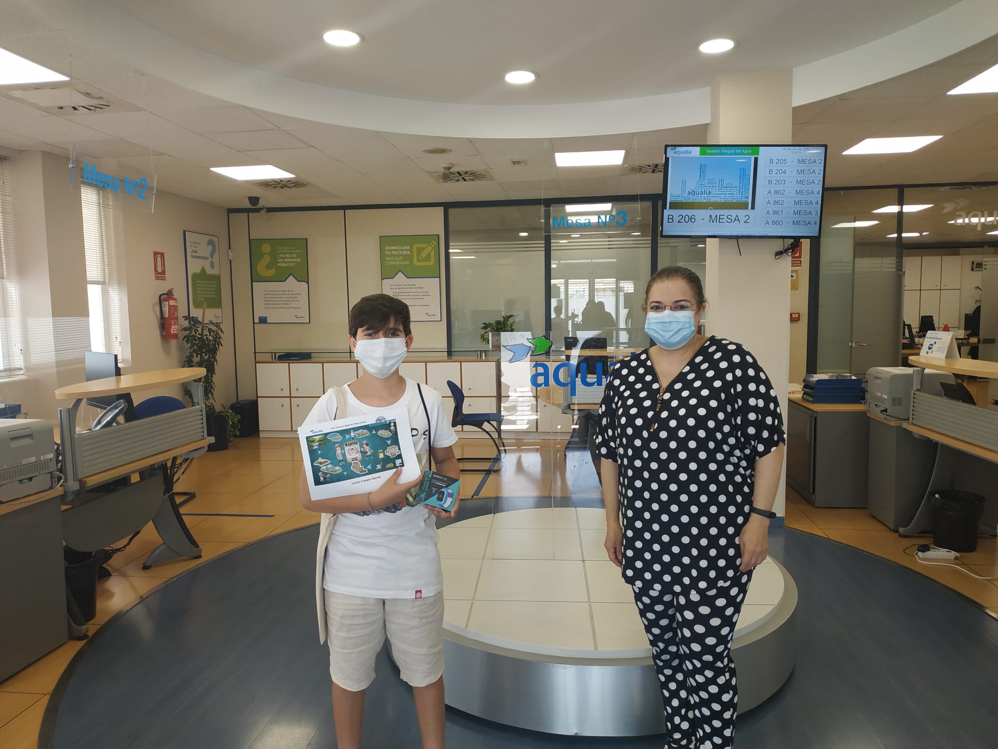 Cada uno de ellos ha recibido su premio, un smartwatch, en la oficina del Servicio Municipal de Agua con mascarilla puesta y guardando distancia con Anabel Ruiz, responsables de Clientes, que ha sido la encargada de entregárselo. “Íbamos a entregar los premios en marzo, pero con el confinamiento se tuvo que cancelar todo. Sabíamos que los pequeños estaban deseando recibir su regalo, así que lo hemos hecho en cuanto hemos visto que las medidas de desescalada lo permitían, aunque haya sido de una manera un tanto extraña por las circunstancias” – ha declarado Anabel Ruiz.